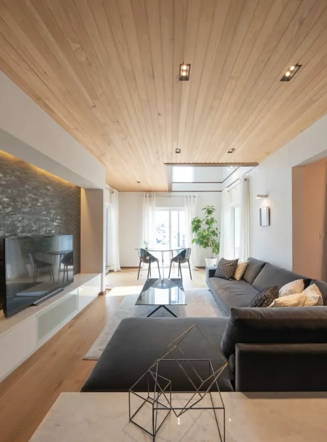 【洗練×温もり】 板張り天井が落ち着きを添える、大人のモダンリビング