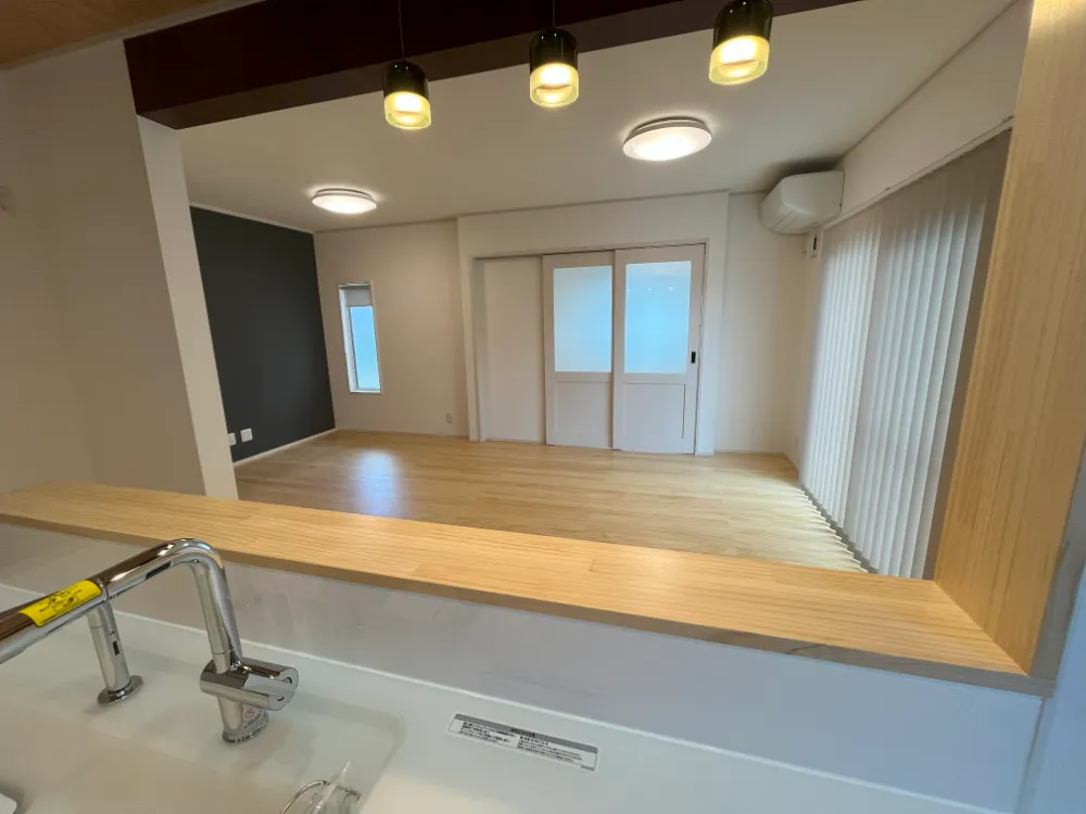 LDKを広々使えるように、対面キッチンに。 圧倒的に少なかった収納も適材適所に十分な収納を設けました。