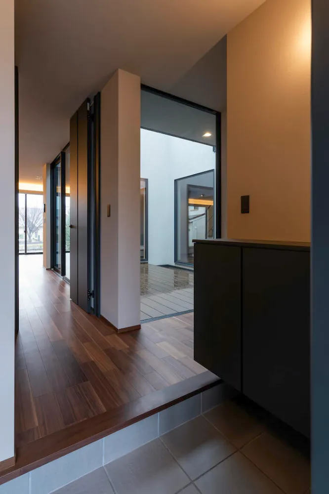 奥様の「好き」が詰まった、カフェのような玄関 やさしい光とともに、心地よくお客様を出迎えます。